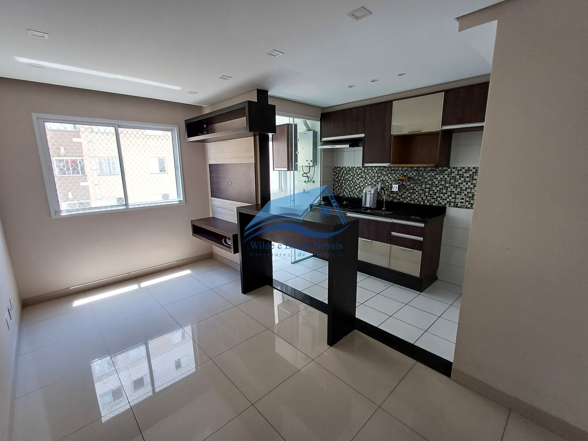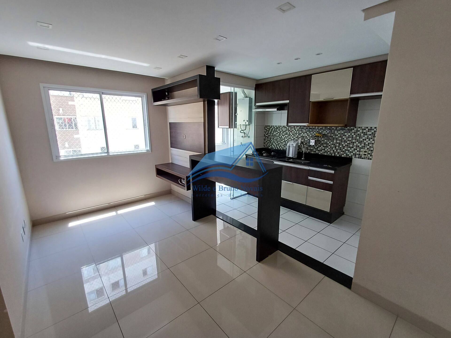 2 dormitórios sendo dormitório do casal com armários planejados, banheiro com planejados e box de vidro, sala com rack embutido.