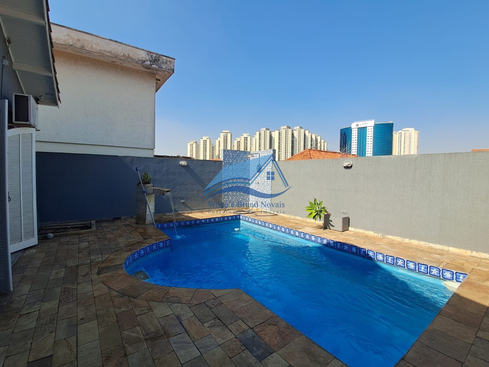 Excelente área de lazer com piscina ampla e churrasqueira, muito espaço para reunir família e amigos.