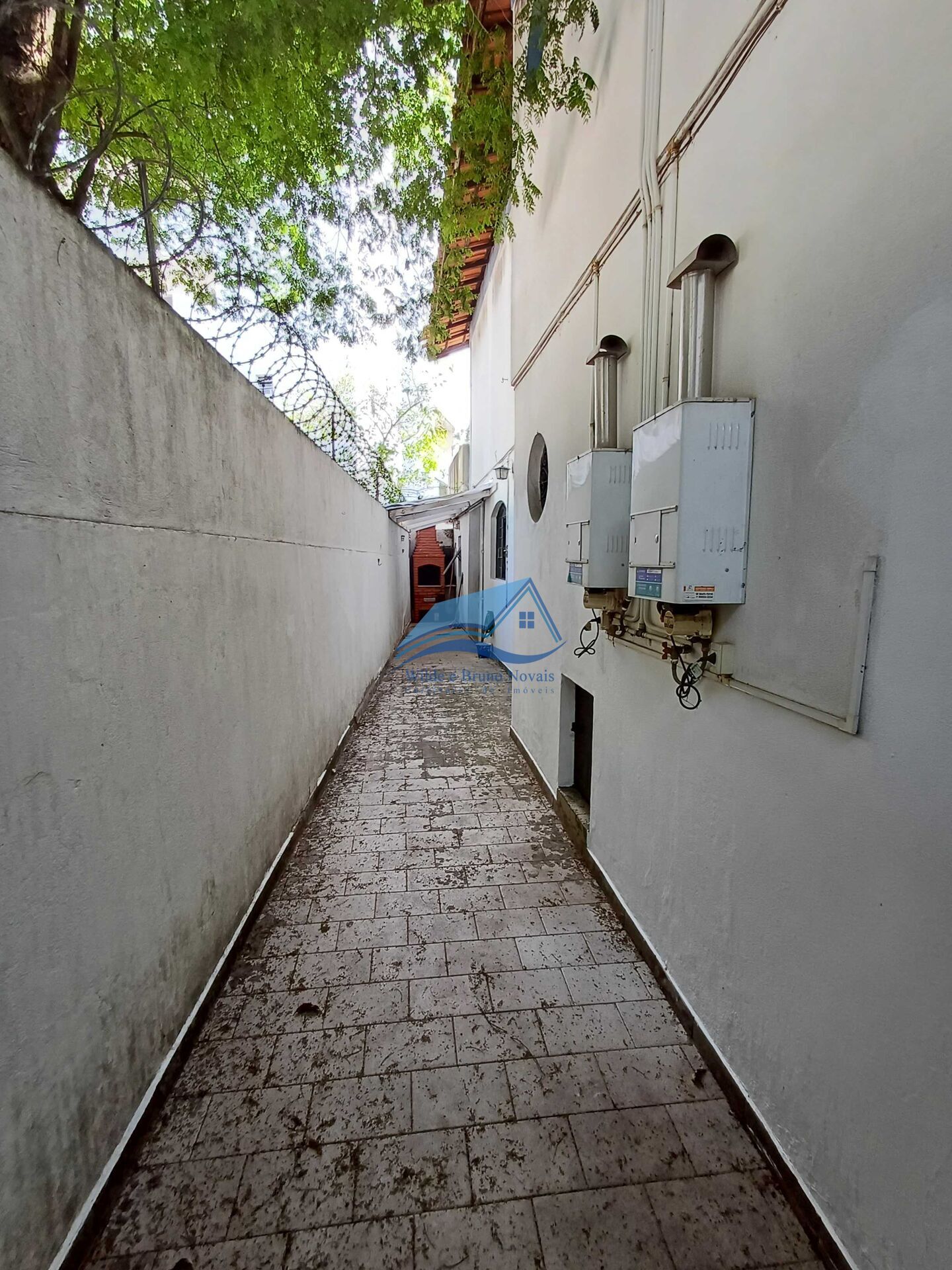 Amplo corredor lateral, churrasqueira e garagem coberta.